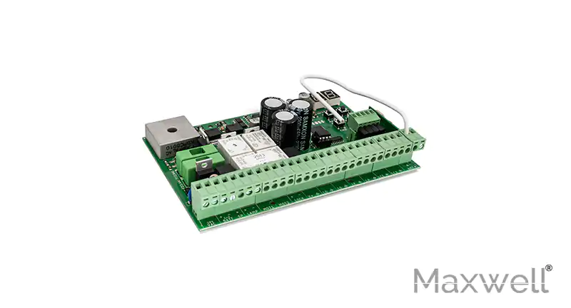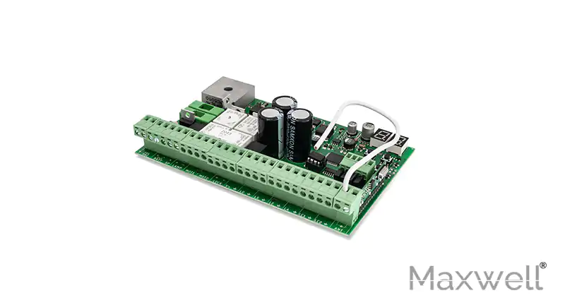 - Inputs for 2 pairs of photocells with different functions, such as 2 sec. inversion, stop or inversion, opening button, closing button, pedestrian, rotary button (open and close)